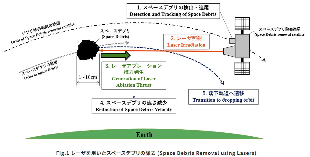 地上や衛星からレーザーを照射し、デブリの表面を微量に蒸発させることで推進力を得て、軌道を落として燃やし尽くす「レーザーほうき」のような技術も検討されています。この技術は、比較的小型のデブリに対して、遠隔から非接触で軌道変更を加えられるという利点があります。