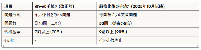 II. 2025年10月改正の全貌:厳格化された試験と運用基準