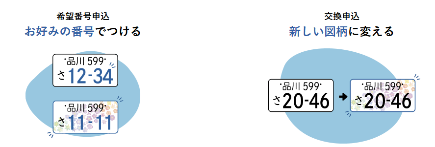 図柄入りナンバープレートは、新車・中古車の購入時だけでなく、現在お乗りの車の番号が変わることなく、いつでも交換することができます。