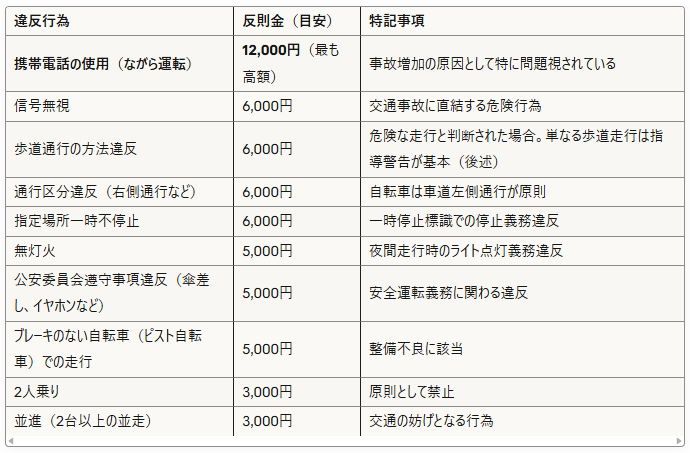 - 対象者: 16歳以上の自転車利用者が対象となります。15歳以下は青切符の対象外です
