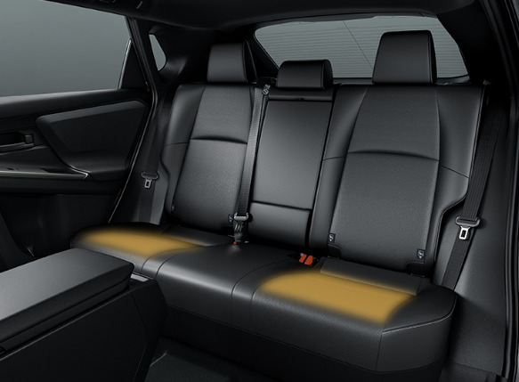また、充電中や走行残距離といったEV特有の詳細情報が、メーターディスプレイに拡充して表示されるようになり、ドライバーは常に車両の状態を正確に把握でき、安心してEVドライブを楽しむことができます。前席乗員足元には、トヨタ初となる輻射ヒーターも設定されており、冬場の快適性も向上しています。