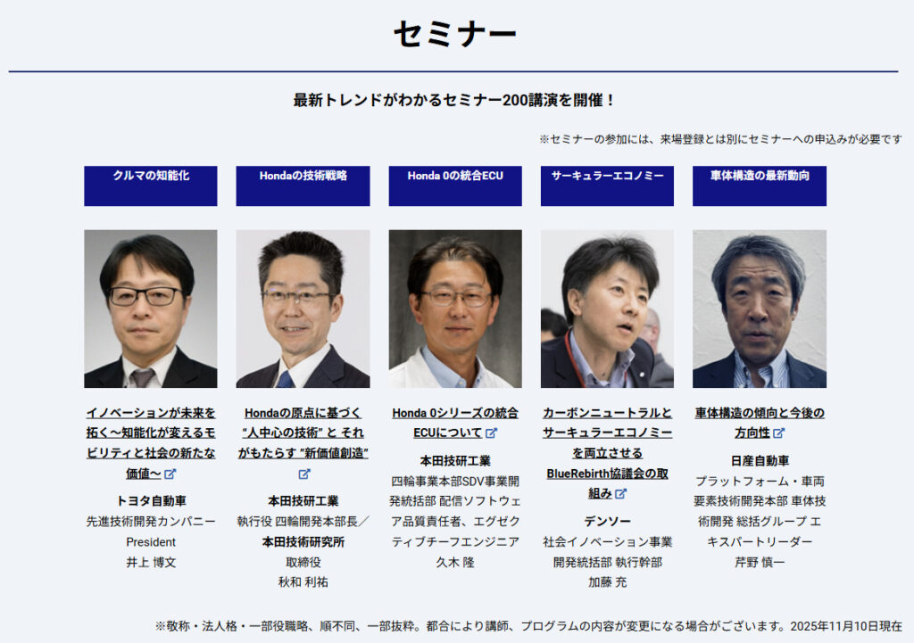 このイベントは、未来のモビリティを形作る「技術の源泉」を知る上で極めて重要です。筆者も毎年欠かさず視察に訪れ、業界のトレンドをキャッチアップしています。