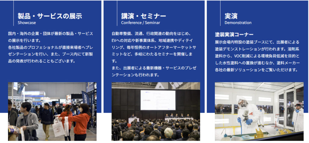 自動車整備士、板金塗装業者、部品販売業者など、プロフェッショナルを対象としたセミナーや商談会が多数開催されます。業界の最新情報交換や、ビジネスチャンスの創出の場として非常に重要です。筆者も、日頃からお世話になっている取引先の方々と情報交換をするために、毎年訪れています。
