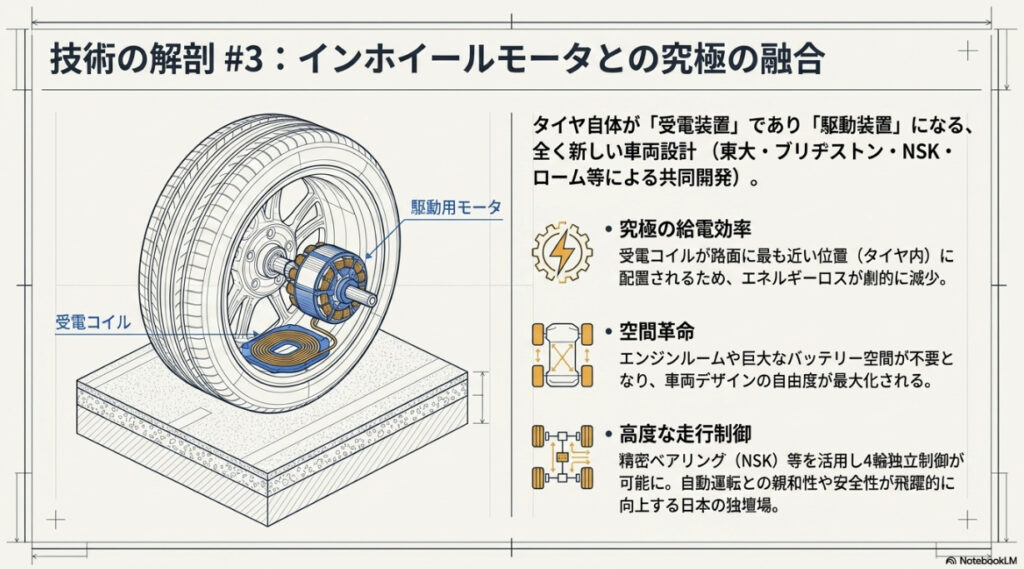 インホイールモータとの融合:タイヤ自体が給電・駆動ユニットになる未来
