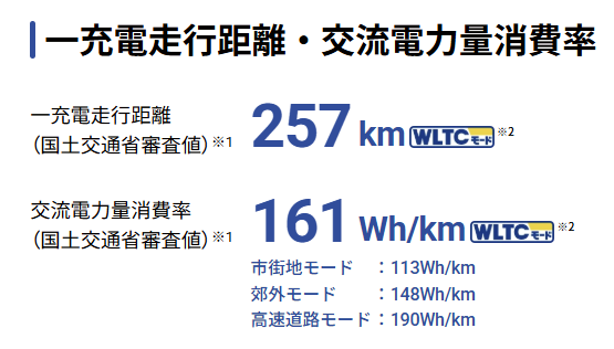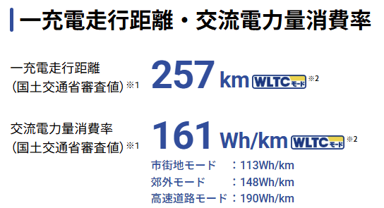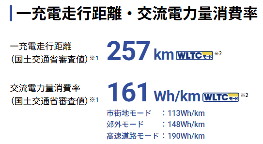 具体的にこの257kmという数字が何を意味するのかというと、日本の軽商用ユーザーの約8割が1日の平均走行距離100km未満である、という統計に基づけば、多くの業務で充電なしに1日をカバーできることを示しています。
