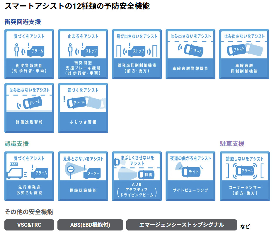 スマートアシストには、上記以外にもドライバーを多角的にサポートする機能が多数搭載されています。