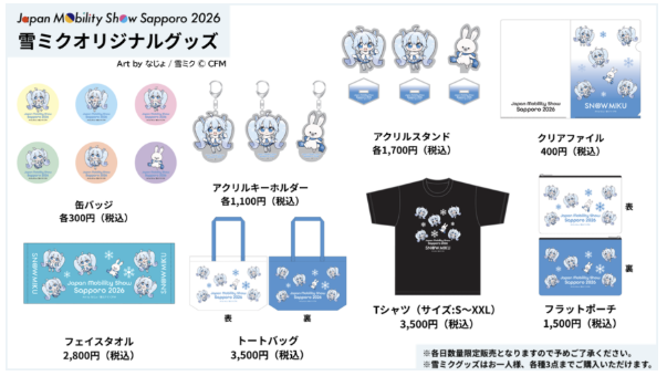 過去の札幌モーターショー・モビリティショーでも、雪ミクの限定グッズは開場早々に売り切れることもあったため、購入を希望される方は早めの来場をお勧めします。