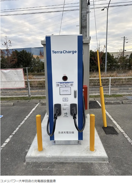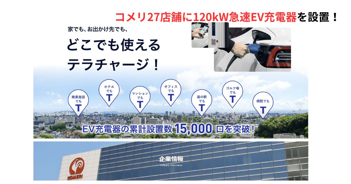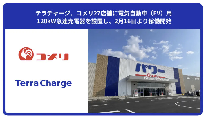 テラチャージ、コメリ27店舗に120kW急速EV充電器を設置!ホームセンターが地域脱炭素の「ハブ」となる未来