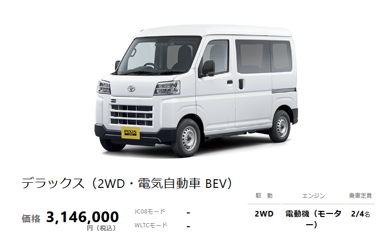 ピクシス バン BEVのメーカー希望小売価格は**3,146,000円(税込)**からとなっています。同等クラスのガソリン車と比較すると、確かに初期コストは高く見えます。