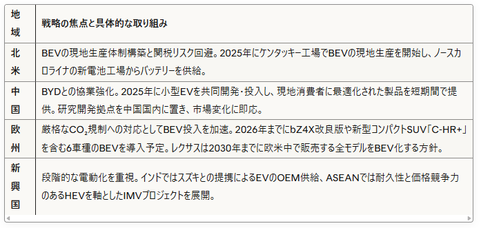 トヨタの真の強みは、単一戦略ではなく、各市場の規制や消費者ニーズに合わせた柔軟な適応(マルチパスウェイの地政学的な実践)にあります。