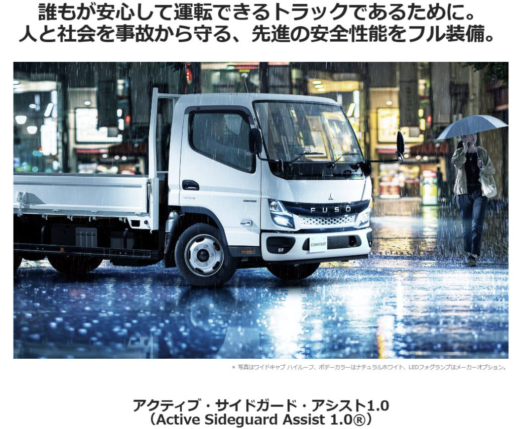 三菱ふそう独自の先進技術により、キャンターの安全性能は「トータルセーフティ」の理念のもと、飛躍的に高まっています。小型トラック市場において、安全装備の充実度でキャンターは群を抜いています。