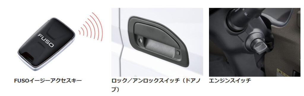 キーをポケットに入れたままドアの施錠・解錠やエンジンの始動が可能です。頻繁に乗り降りを行う配送業務の効率を劇的に向上させます。宅配便のドライバーなど、1日に何十回、何百回と乗り降りを繰り返す業務において、両手に荷物を持ったままドアの開閉ができることは、大幅な時間短縮とストレス軽減につながります。