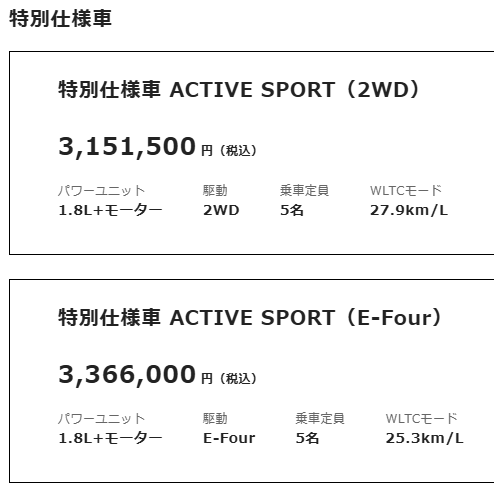 特別仕様車「アクティブスポーツ」もハイブリッド専用となり、さらなる個性と走りの楽しさを求めるユーザーに向けた選択肢も用意されています。