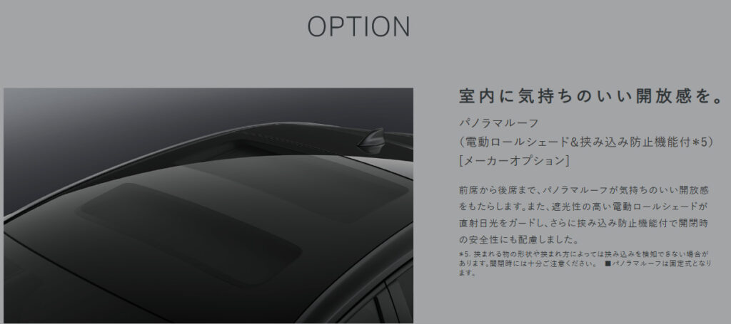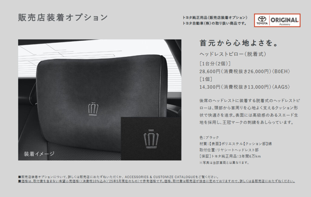 | 6. アクセサリー | 標準装備が非常に充実しているため、機能的なアクセサリーよりも、内装の高級感を高めるアイテムや、専用設計のナビ・オーディオなどが推奨されます。 |