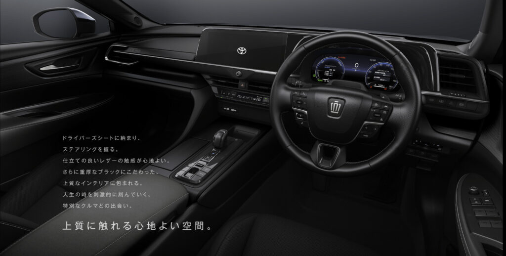 新型クラウンセダンの内装は、「触感、質感、動き、音、細部の見栄え」といった感性品質にこだわり、トヨタのフラッグシップセダンらしい高級感溢れる空間となっています。