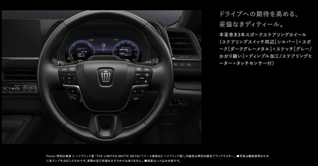 新型クラウンセダンのグレード設定は、パワートレインの違いのみで、非常にシンプルに「Z」グレードの1種類に集約されています。この潔いグレード構成は、迷わせない、シンプルな選択を可能にしています。