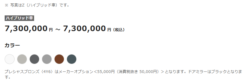 - HEV(ハイブリッド):8,100,000円~