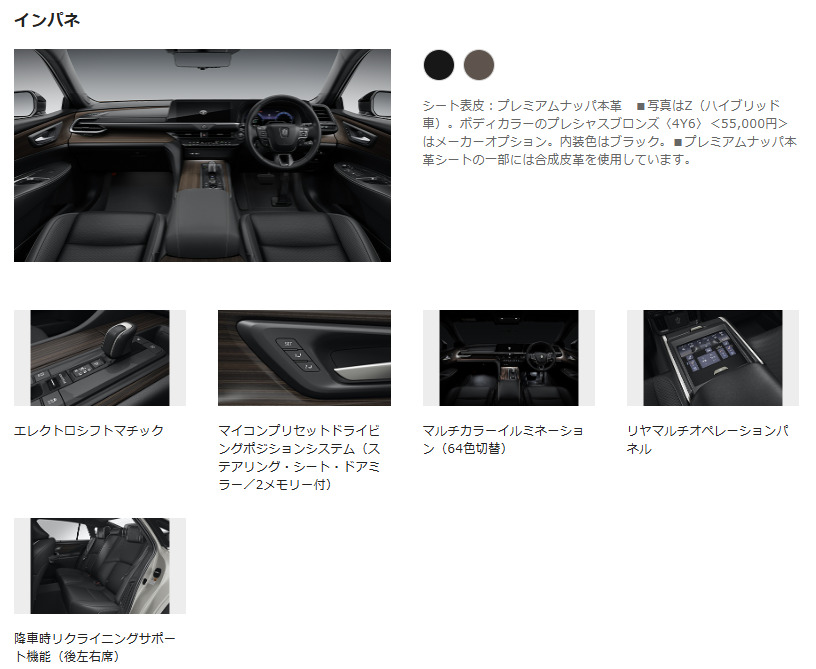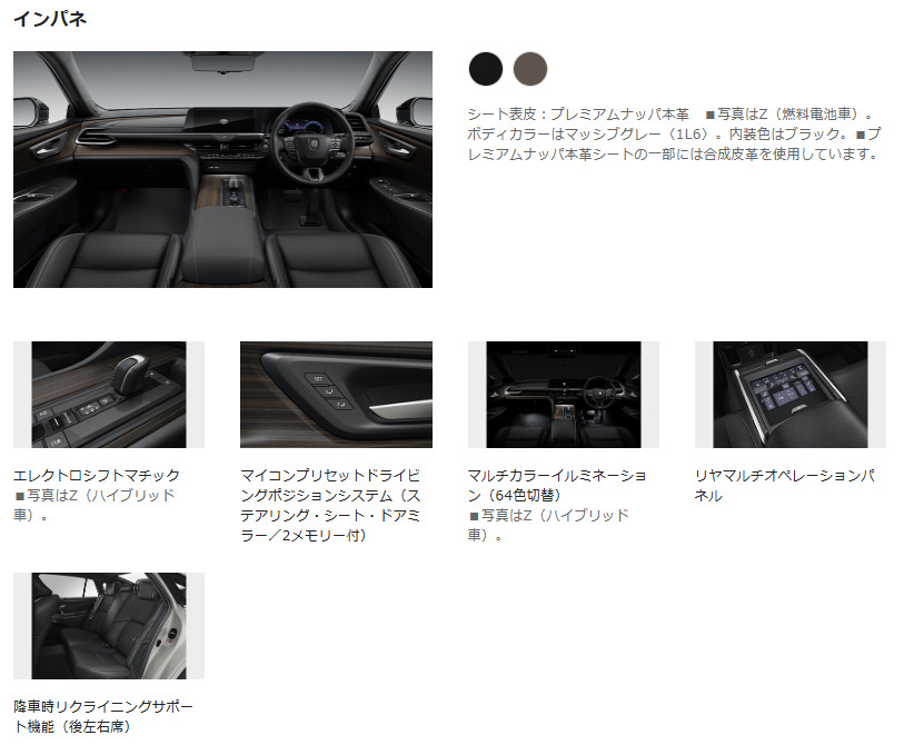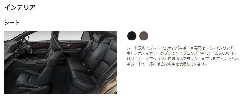 | 3. 室内空間 | Z(HV)と基本的に共通。上質な合成皮革シートや快適装備はそのまま享受できます。 |
