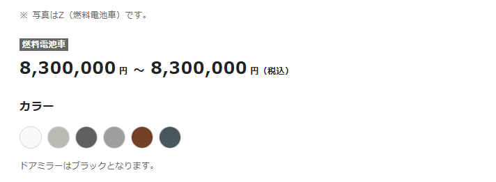 - FCEV(燃料電池):8,550,000円~