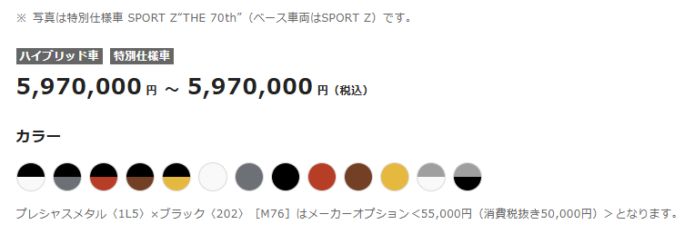 4. 特別仕様車:Z “THE 70th” / RS “THE 70th”