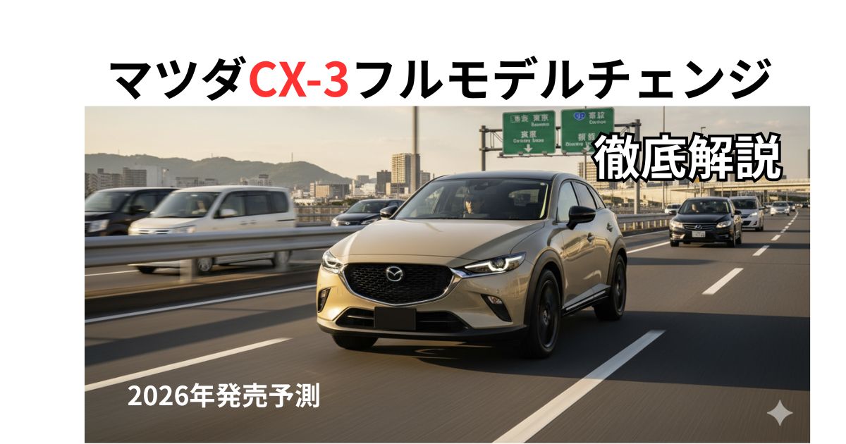 本記事に記載された新型CX-3の仕様、価格、発売時期等の情報は、現時点で入手可能な情報に基づく予想・推測を含みます。実際の製品とは異なる場合がありますので、最新情報はマツダ公式サイトおよび正規ディーラーにてご確認ください。