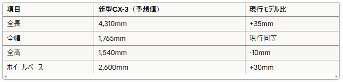 新型CX-3は、2026年の発売後、マツダのグローバル販売を牽引する重要なモデルとなることが期待されます。