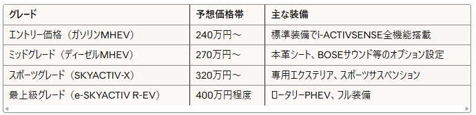 特に、e-SKYACTIV R-EVモデルは、全体の30%(約30,000台)を占めると予測されており、マツダの電動化戦略の成否を占う重要なモデルとなります。