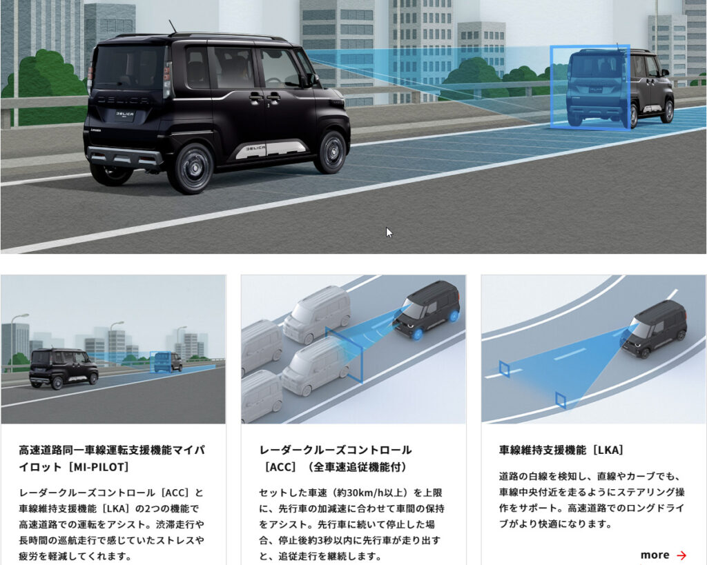 デリカミニは政府が普及を推進する「サポカー」の中でも最上位の区分である「サポカーSワイド」の認定条件を満たしており、安全性能への配慮は十分です。