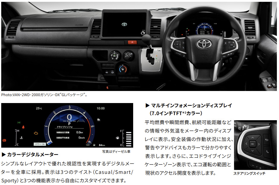 新型ハイエースは、その象徴的なスタイルを維持しつつ、最新技術によって機能美を磨き上げています。