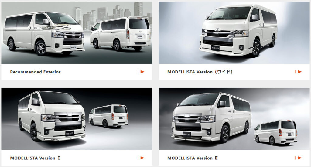 ハイエースは、トヨタ純正の「モデリスタ(MODELLISTA)」や「GR PARTS」によるドレスアップに加え、車中泊仕様の「MRT(Multi Role Transporter)」など、自分だけの一台を作るためのパーツが非常に豊富です。エアロパーツ、アルミホイール、LEDライトなど、外装のカスタムパーツだけでなく、内装パーツも充実しています。