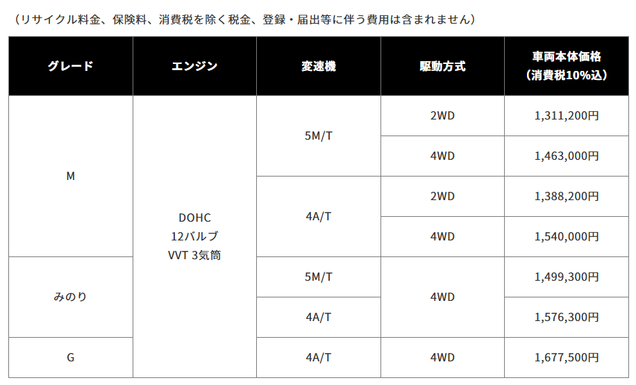 価格:1,677,500円(4WD / 4A/Tのみ)