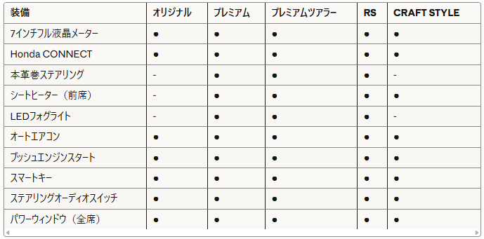 - 安全性:Honda SENSING全車標準装備に見られる、全てのユーザーの安全を守る姿勢