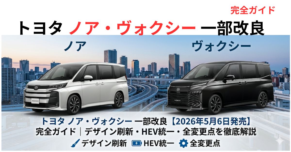 2026年4月10日、トヨタ自動車はミニバンの王道である「ノア」と「ヴォクシー」の一部改良を発表しました。発売日は2026年5月6日を予定しており、今回の改良は単なる変更に留まらない、**「デザイン刷新」「電動化推進」「質感・安全性向上」**を三本の柱とした大幅な刷新となっています。