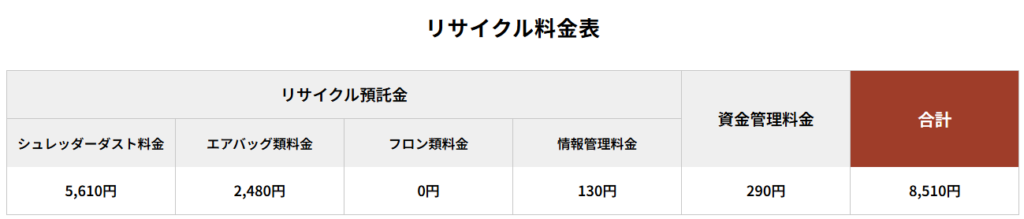 リサイクル料金は2025年12月時点の金額です。