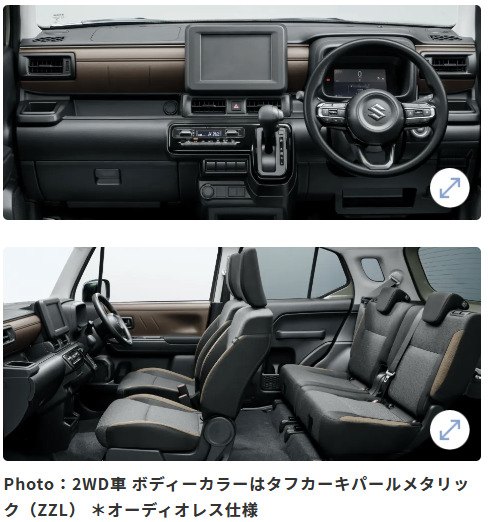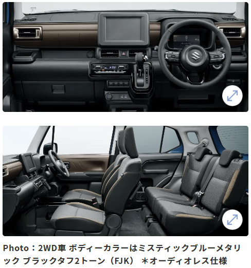 基本的な外装・内装の意匠はMZと共通ですが、前述の専用加飾や装飾は省かれています。シンプルで飽きのこない、クロスビーの個性をそのまま楽しみたい方には十分です。