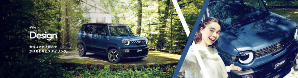新型クロスビーの最大の変更点のひとつが、フロントマスクの完全刷新です。このデザイン変更は、三菱デリカミニやジープ・レネゲードを彷彿とさせる、よりアイコニックな外観を実現し、ユーザーに愛着を持たせるデザインへと進化しました。