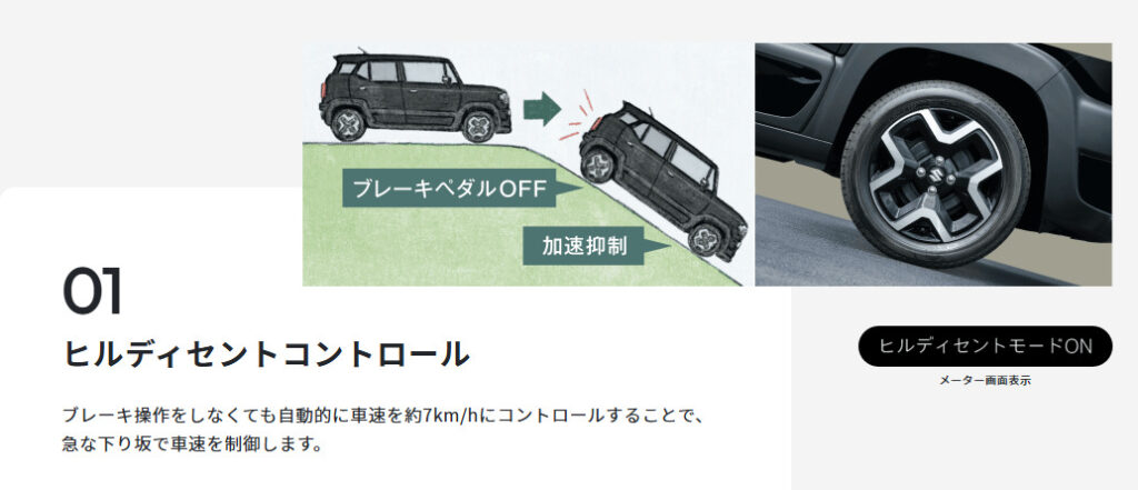 スズキセーフティサポートがメーカーオプションとなっています。購入時にオプションを選択しなければ、衝突被害軽減ブレーキなどの先進安全装備が装着されません。