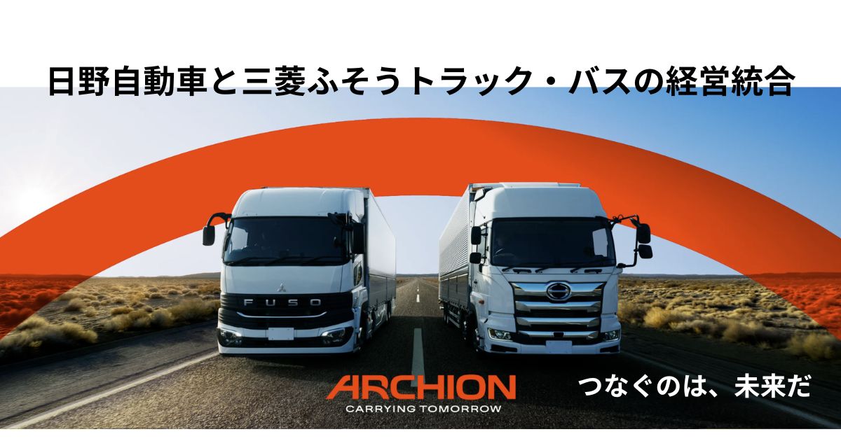 日本の商用車業界に、今まさに「100年に一度」とも言える地殻変動が起きています。2026年4月1日、国内トラック・バス大手の日野自動車(以下、日野)と三菱ふそうトラック・バス(以下、三菱ふそう)が経営統合し、新たな持株会社「ARCHION(アーチオン)株式会社」が誕生しました。