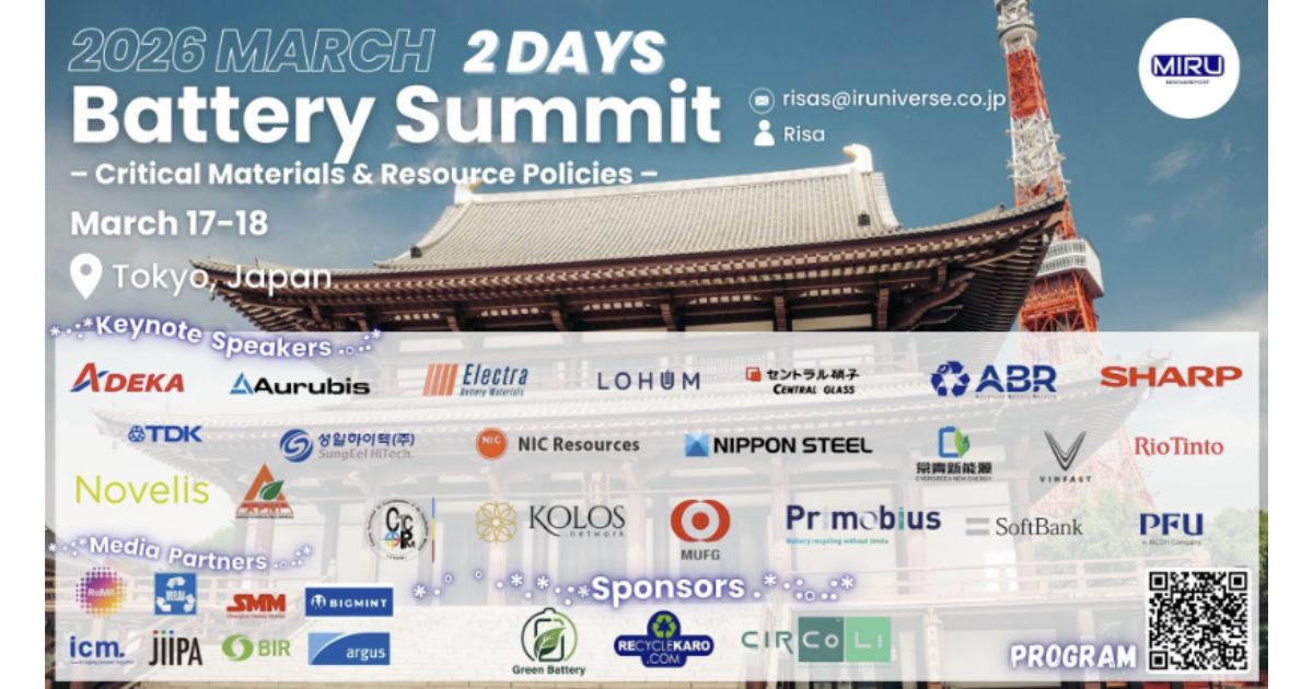 全固体電池、リチウム硫黄電池、ナトリウムイオン電池といった次世代技術の開発動向、欧州電池規則への対応策、リサイクルによる資源循環の実現、同盟国サプライチェーンの構築―これらすべてのテーマが、2日間のサミットで網羅されます。