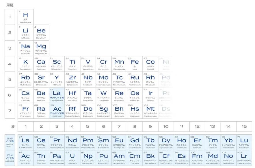 レアアース(色付き元素)