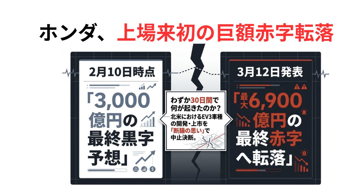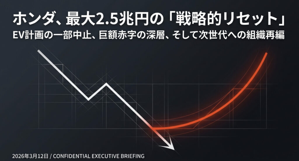 わずか1ヶ月前の2026年2月に3000億円の黒字を維持すると公言していたところからの急転直下である。実質的に約1兆円の利益が一夜にして消えた計算になるこの事態を、自動車業界に身を置く者としてどう読み解くべきか。単なる「失敗」なのか、それとも未来への「前払い」なのか。本記事では、業界の最前線で培った視点を軸に、今回の決断の本質と、ホンダが描く復活シナリオを徹底的に解剖する。
