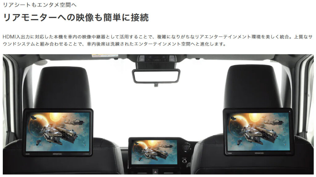 リアモニターへの映像出力に対応しており、後部座席でも高画質な映像とDSPによる高音質なサウンドを同時に楽しむことができます。ファミリーユーザーが多いノア・ヴォクシー・アルファード・ヴェルファイアのオーナーにとって、子どもたちの長距離ドライブでのエンターテインメント体験をワンランク押し上げてくれる機能として特に注目です。