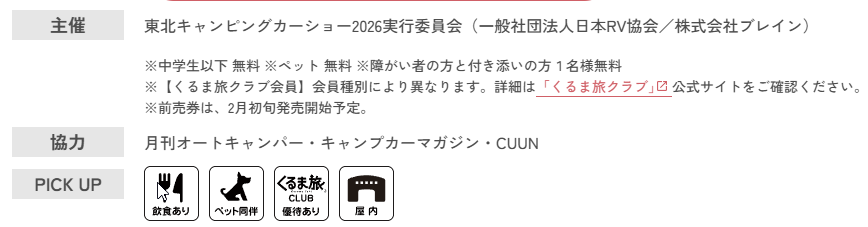 東北キャンピングカーショー2026は、単なる車両展示会ではありません。EVシフト、リノベーション、IoT化する電装設備、そして高度化する衛生設備など、自動車業界の最先端技術が「遊び」というフィルターを通して凝縮された場所です。