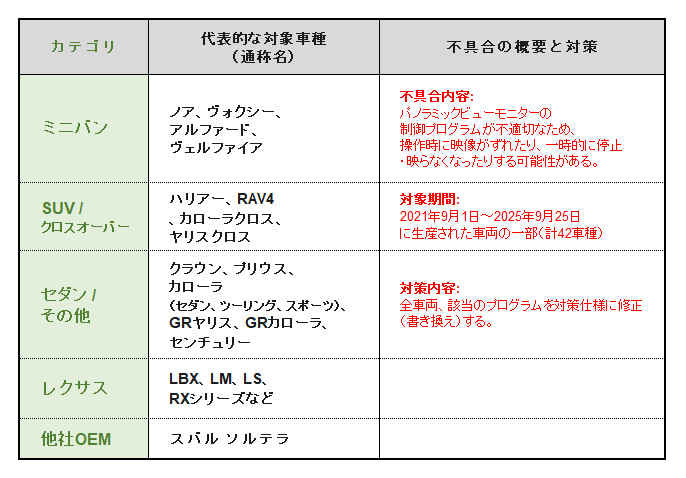 これほど多岐にわたる車種(トヨタ車、レクサス車、スバルOEM車)が同一のプログラム不具合でリコールとなる事実は、現代の自動車開発におけるプラットフォーム共通化戦略(TNGAなど)が、単一部品の欠陥が大規模な影響を生むリスクと表裏一体であることを明確に示しています。